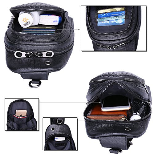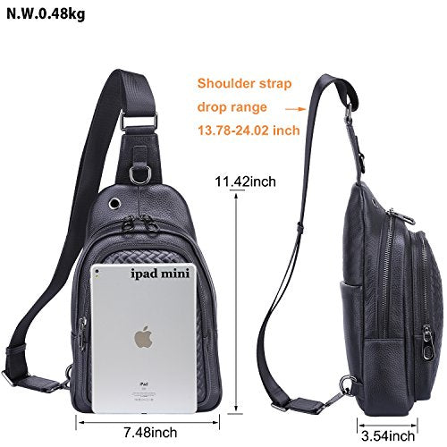 - Materials: This versatile sling bag is made of high-quality top grain cowhide leather, polyester twill for lining, and rust-proof zinc alloy for hardware.