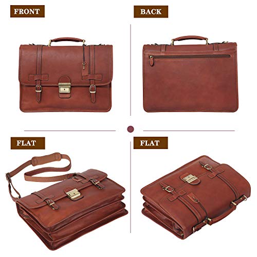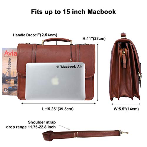 - This vintage leather attache stands upright on its own without falling over. Comfortable padded handle drop 1 inch (2.54cm). An extra detachable and adjustable shoulder strap is made of vegetable tanned leather and cotton fabric, matching with metal in retro brass color. It is often more stylish and more durable than others in market