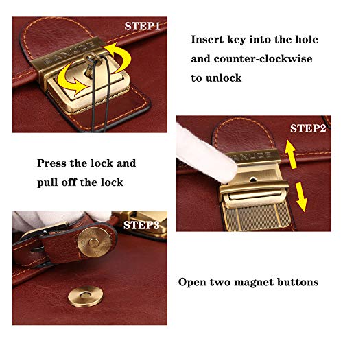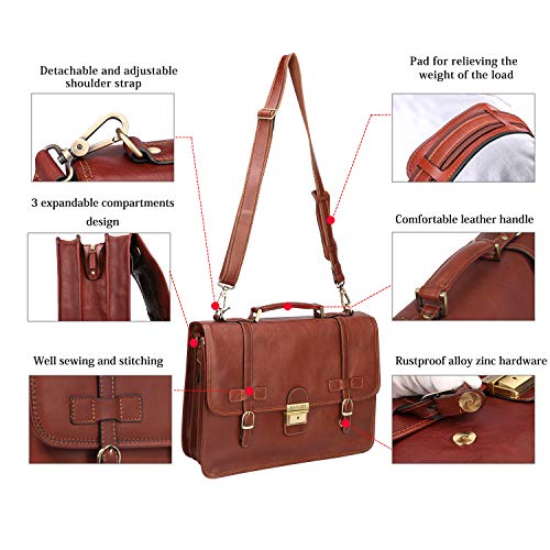 - Classic and professional briefcase look. Large capacity briefcase with 3 compartments design; Used key lock and double buckles closure, which can securely to keep your 14 inch laptop, A4 folders and paperwork. Dedicated pockets and slots for your wallet, keys, pens, smart phone