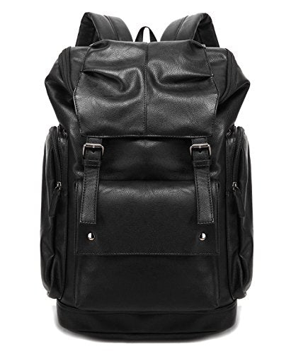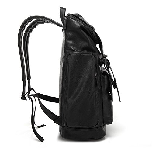 BAOSHA BP-16 PU Leather Laptop Backpack School College Rucksack Daypack Black
