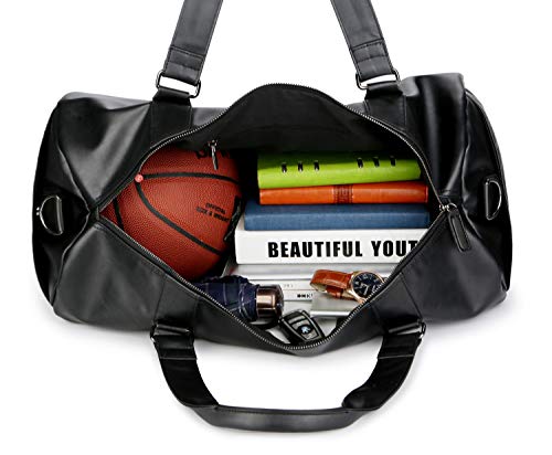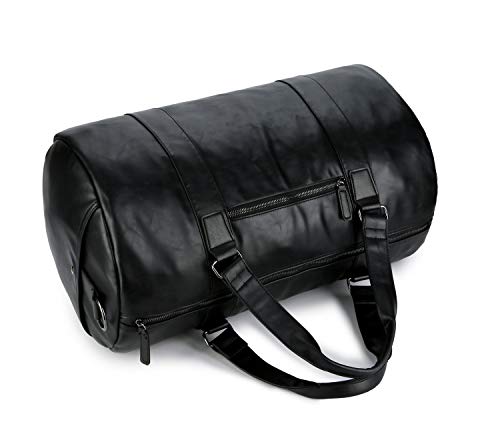 - Circular Leather-Like Overnight Weekend Travel Bag for Men
