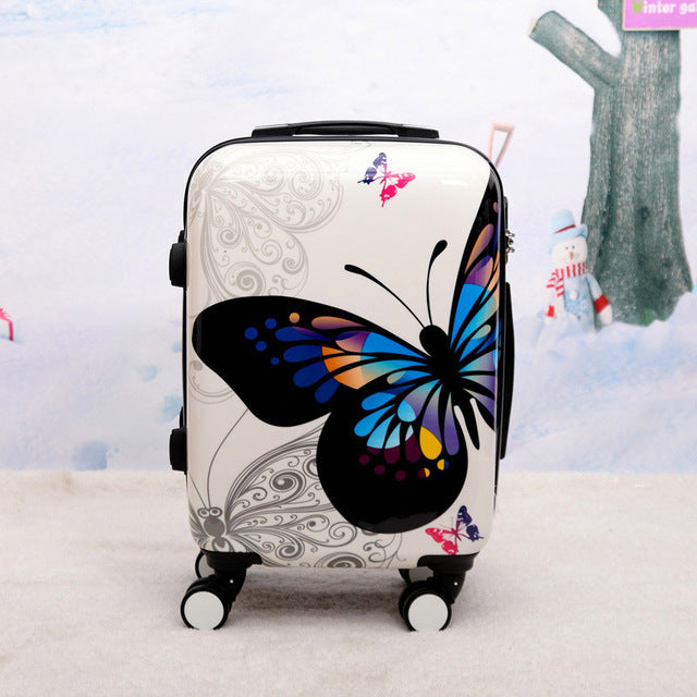 Beasumore Women Butterfly Abs Rolling Luggage Set Trolley Suitcase Wheels High Quality 12 20 24