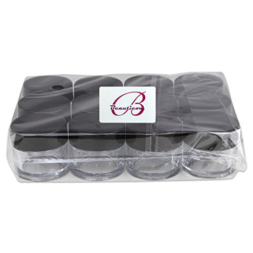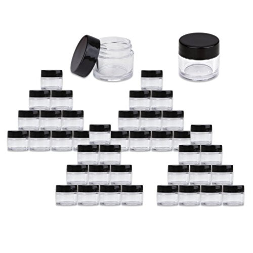 Details: Beauticom High-Grade Quality 7 Grams/7 ML (Quantity: 60 Packs) Thick Wall Crystal Clear Plastic Jars Container with BLACK Lids for Cosmetic, Lip Balm, Lip Gloss, Creams, Lotions, Liquids, Glitter, Charms, Nails - LEAK-PROOF JARS!!
