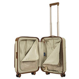 Details: A lightweight, handcrafted suitcase offering a spacious interior, four spinner wheels, and polycarbonate shell. Interior sized to hold your business and personal essentials for a short trip while storing comfortably in an airplane's overhead storage bin. Full-grain tuscan leather trim belting makes it the perfect combination of vintage and modern-chic. Japanese dual hinomoto wheels glide effortlessly over hard and soft surfaces. Front pocket includes padded compartment for both laptop and tablet. Ideal for 1-3 day trips. Weight 7.7 lbs.