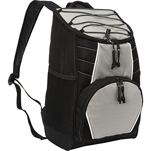 Details: This sporty backpack is also a cooler! It is perfect for a picnic, ideal for a day at the beach, and optimal for the outdoors. Padded with PEVA lining and a detachable, clear PVC liner, which is heat-sealed, making the cooler leak-proof and easy to clean. It holds up to 18 cans! In the front, theres a zip pocket with open pockets for sunscreen or phones. Dual mesh pockets on the sides allow for additional bottles or cans. Made of 600D polyester, the bungee cord and mesh trim finish this fun, functional backpack cooler! MSRP: $39.95