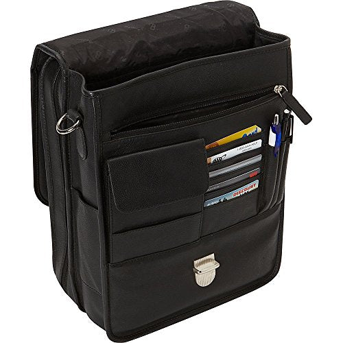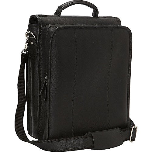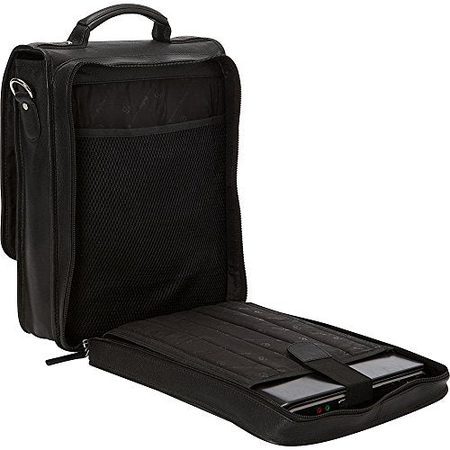 Details: This ultra-cool vertical case, made of vegetable tanned Columbia cowhide, provides a completely different look. Beneath the flap, you'll find a zip pocket and additional pockets for calculator, notes, cards, pens, and other accessories. It also has a roomy main compartment for your files &documents. The rear compartment unzips all the way down to reveal a TSA friendly 15.4 padded laptop sleeve. Top carry handles and a detachable shoulder strap finish this case. Product Size: 12 1/2"W x 14"H x 5 1/2"D Material: leather