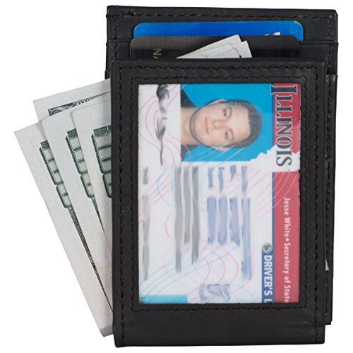 - Leather Magnetic Closure Multi-Card Money Clip (RFID). Features Radio Frequency Identification (RFID) Blocking Technology To Help Prevent Identity Theft And Block Radio Waves From Being Transmitted From U.S. Passports And Certain Credit/Debit Cards. Full Grain Cowhide Marble Crunch Leather Exterior With Fully Lined Interior. Slim, Multi-Card Wallet Consists Of Four Credit Card Slots, An Open Slip Pocket To Store Cash Or Receipts, And An I.D. Window.