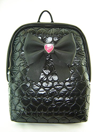 Details: You will just love this backpack style handbag by Betsey Johnson. she puts her stamp on it with the big bow on the front!. The bag measures approximately 12"L x 16.5"H x 5"W so it's plenty big enough to fit some books, a tablet or small laptop and your other essentials.