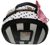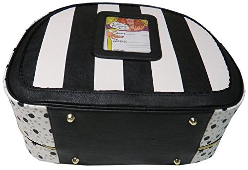 Details: You could not find a neater piece of luggage then this practical Betsey Johnson Round Suitcase, constructed PVC detailed exterior, train top handle with 2" drop, detachable and adjustable crossbody shoulder strap with 22" drop, two-way zip around closure. This Lightweight weekender, Opens to fully lined spacious interior has slip and Zip mesh pockets. keeping it clean is easy!