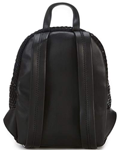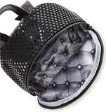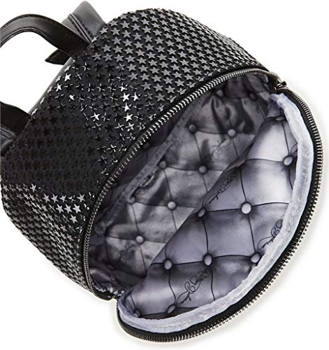 Details: This chic backpack features a rounded silhouette with a front zippered pocket, while the shiny surface adds a glamorous touch. The backpack features a zipper pocket and a zipper closure. Comes with a star applique details and a front zip pocket outside. The backpack is fully lined. The approximately measurement of the backpack is 7.25" x 10" x 4". The backpack is made out of polyurethane.