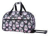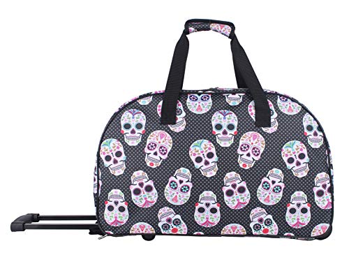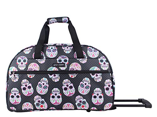 Betsey Johnson, conquers a dualism between Rock and Roll, and "Girly Girl". This is significant in its overall design philosophy. The designer patterns bring a vacation-ready vibe to this Betsey Johnson suitcase. Each piece is made from a signature fabric. This wheeled duffel use reinforced handle poles for extra strength and durability. The construction of the bag is designed to maximize space and leave extra room for packing when you need it. This is a beautiful piece of traveling art piece specially designed for the environmentally conscious modern lady!