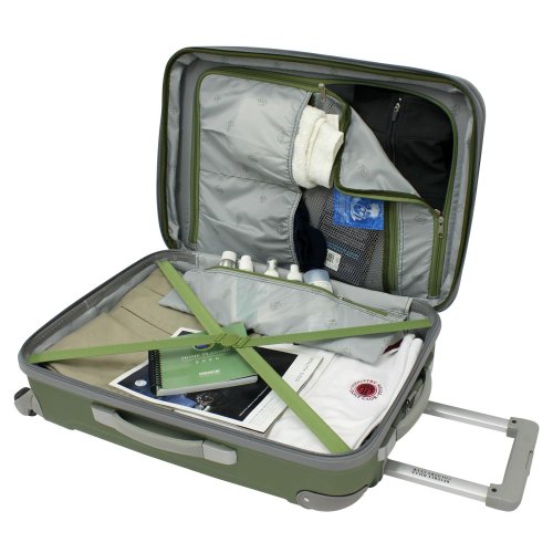 Details: The Beverly Hills Country Club Newport 24 Hardside Spinner has unique 4-corner riveted protective shells that protect your belongings through enhanced durability. Each case is built with flexible ABS composite material in eye-popping colors. The interiors have shoe pockets, mesh pockets for toiletries, and tie-down straps to hold clothes in place.