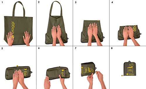 Details: Get rid of the plastic bags and shop with the Biaggi PakSak Packable Shopper! This versatile yet stylish bag is perfect for groceries, beach, pool, traveling needs, errands and more! Made with nylon fabric, this bag is water resistant and easy to clean, making it durable and ready for any occasion. The PakSak Packable Shopper has a unique folding design, which allows you to save room and is convenient for storing in your car or leaving in your purse. The Shopper is an ideal size and weight for everyday use, measuring 16" x 14" x 6" and folds down to 7" x 6" x 0.5", weighing only 0.2 lbs.! The PakSak Packable Shopper is covered by a 2 year warranty so you can be confident in your purchase.