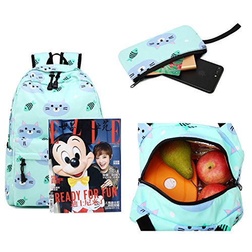 - Cute cat School Backpack 3 in 1: Teens Backpack + Lunch bag + Pencil bag, soft polyester material won't rip or tear when you put a lot inside, smooth zipper with leather puller which makes it feel nice and slides easily.
