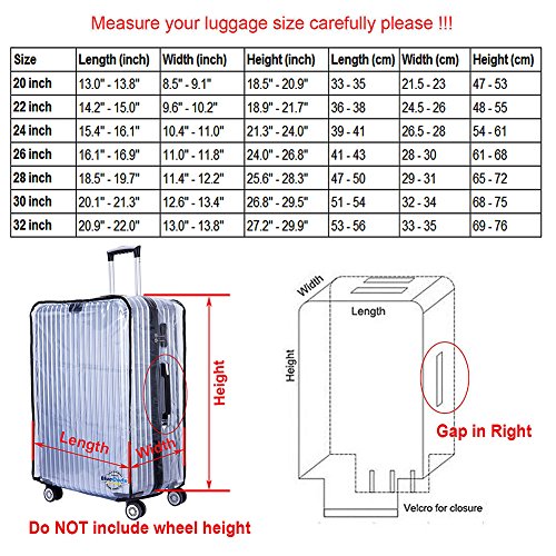 Details: Keep your luggage from getting scratched, stained, messy, or ruined with this clear PVC luggage cover.
