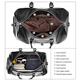 • STRUCTURE: The oversized duffel bag contains 1 big inner compartment, 1 inner zipper pocket, 2 insert pockets. There is a handy shoe compartment with zipper closure. This weekend bag easily hold your 15 inch Laptop, iPad, iPhone, clothes , shoes and other Things. The weekend bag is ideal for plane or train travel. The removable shoulder strap is adjustable and padded for comfort.