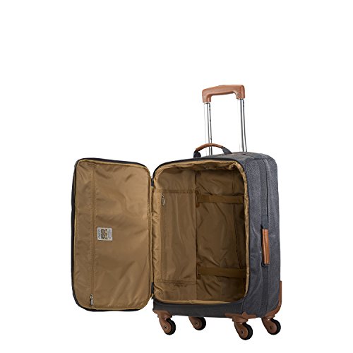 Details: Ultra-light Carry On Spinner with 4 easy glide wheels and a soft construction. Fits comfortably in the overhead cabin area on airplanes. Flexible outer fabric and soft structure allows for maximum space when over-packing or storing bulky items. Great for 2-4 night trips.