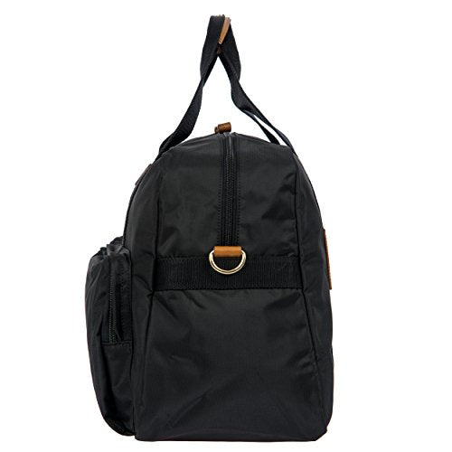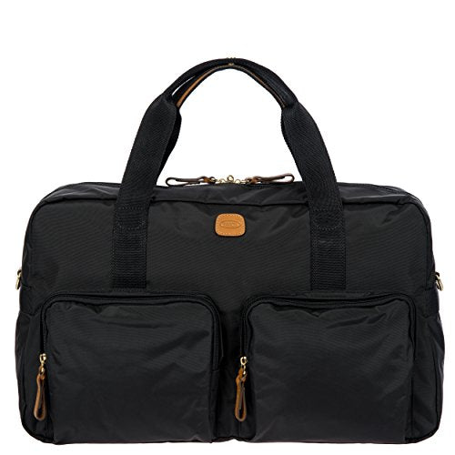 Details: The x-bag/x-travel collection offers a vast assortment that looks good and travels even better; handcrafted using water-proof, easy-to-clean satin nylon, and full-grain tuscan leather trim. Moreover, the entire line is lightweight, washable, and won't fade in the sun. -- the 18 inch cargo overnight boarding duffle w/ pockets was designed with added organization features, providing two spacious pockets on the exterior as well as divided interior with a padded pocket for your tablet. ≫ packs for1-3 days.