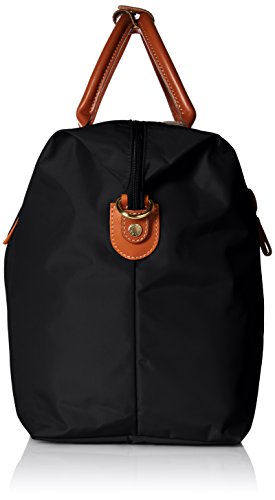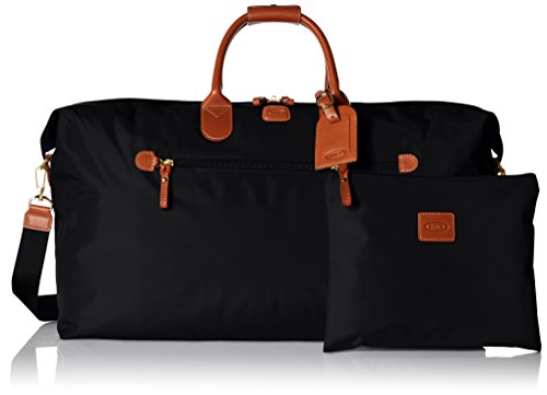 - Packable weekender duffel featuring leather accents, additional travel pouch, rear trolley sleeve, and snap-down corners