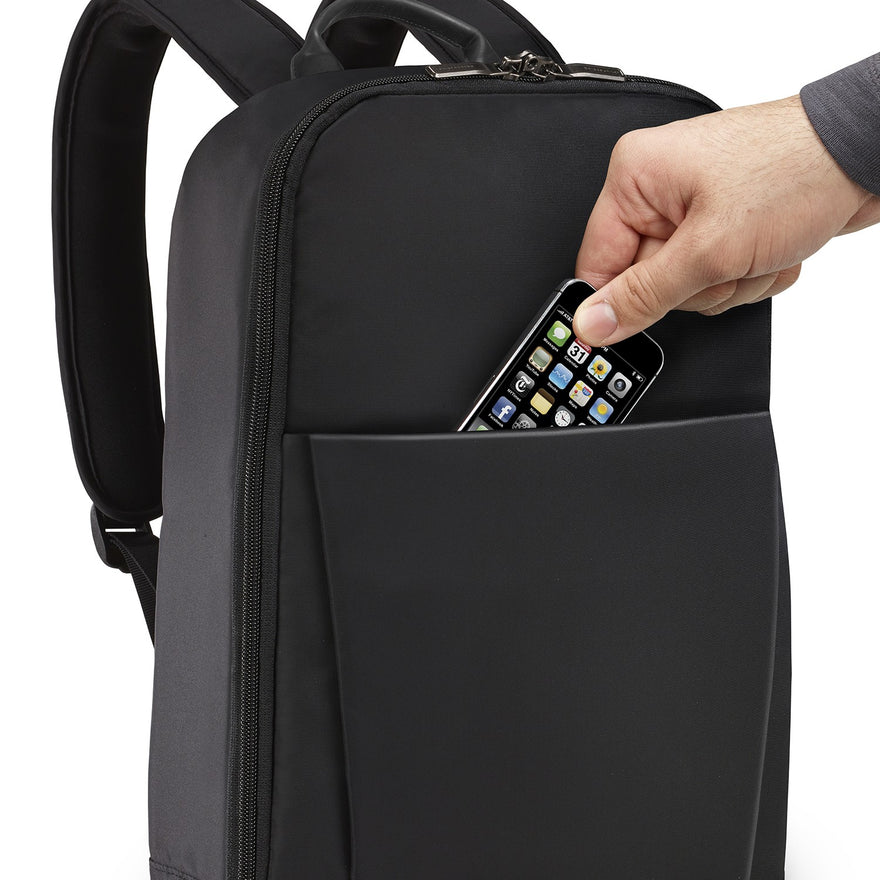 This sleek Backpack carries a lot of surprises.Extra room, casual comfort, and supreme organization all make this the ideal choice for those looking to stay stylish but still need two hands free.Coordinates perfectly with a Sympatico spinner.