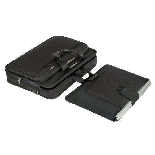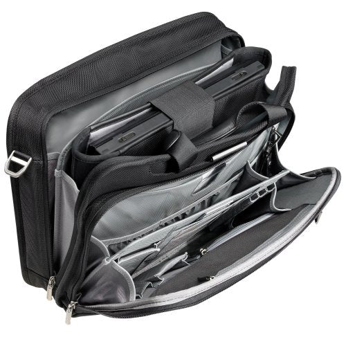Details: KB301-4 Features: -Two section design: (a) computer/file section and (b) organizer.-Lightweight.-Supreme organization.-Striking style.-Padded laptop compartment with separate laptop sleeve.-Lifetime performance guarantee. Includes: -Front slip pocket includes concealed cell phone holder for security and easy access. Dimensions: -Fits most 15.4'' laptop screens.-Weight: 4.1 lbs.-Dimensions: 12'' H x 16'' W x 4'' D.