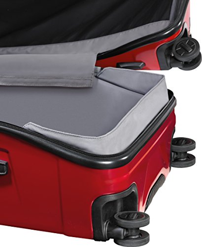 - Strong and lightweight carry-on featuring 360-degree double spinner wheels with durable steel components