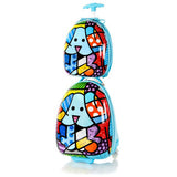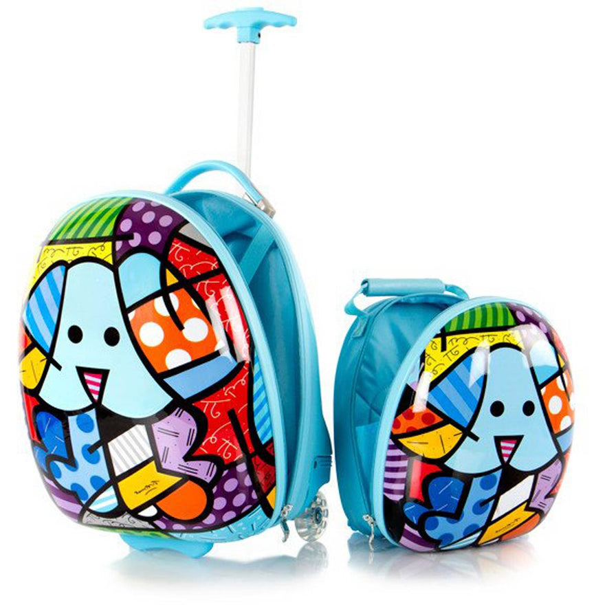Brittorsquo;s Kids Luggage and Backpack 2PC set are part of a Limited Edition Series of luggage. Born in Brazil, Romero Britto is a Florida-based neo-pop artist, painter, serigrapher, and sculptor. Combining elements of pop art and graffiti painting, Brittorsquo;s signature style is recognized worldwide.