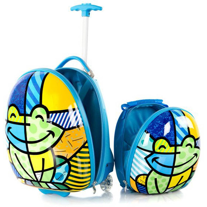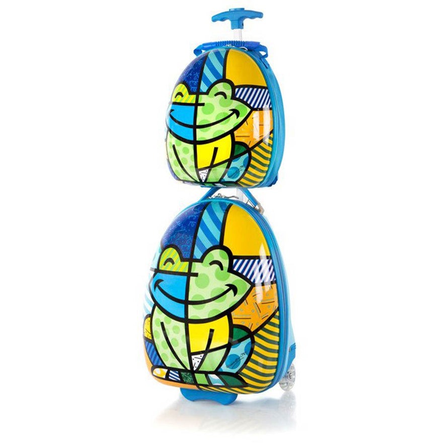 Brittorsquo;s Kids Luggage and Backpack 2PC set are part of a Limited Edition Series of luggage. Born in Brazil, Romero Britto is a Florida-based neo-pop artist, painter, serigrapher, and sculptor. Combining elements of pop art and graffiti painting, Brittorsquo;s signature style is recognized worldwide.