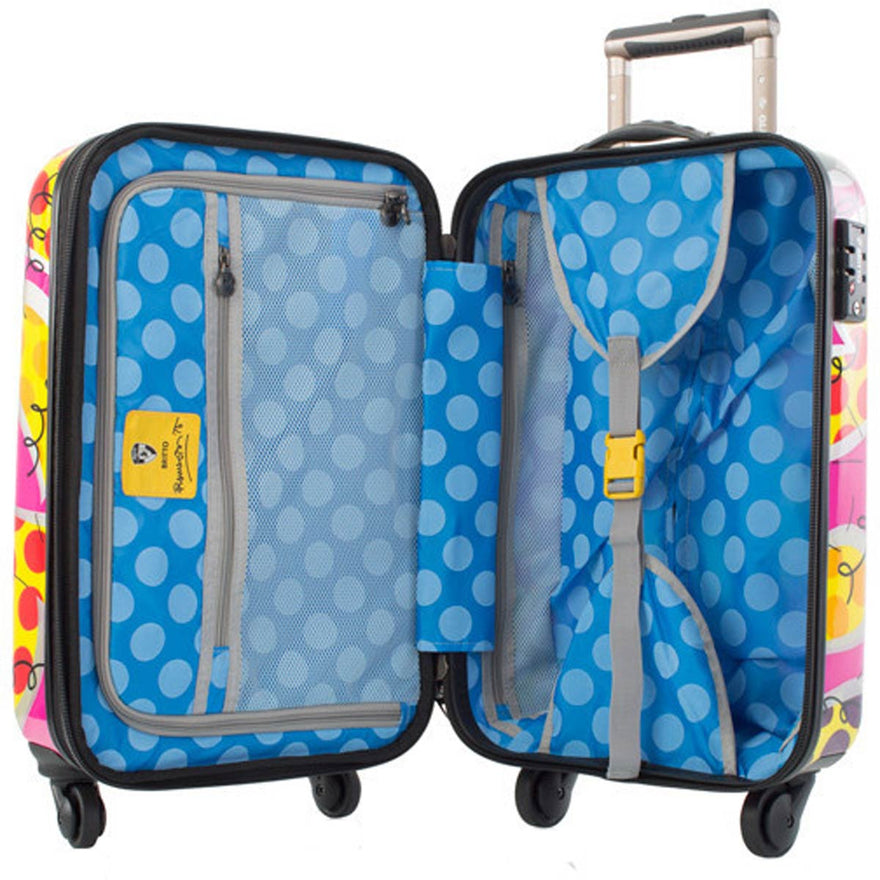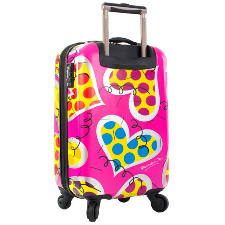 Brittorsquo;s Hearts Carnival Spinners are part of a Limited Edition Series of luggage. Born in Brazil, Romero Britto is a Florida-based neo-pop artist, painter, serigrapher, and sculptor. Combining elements of pop art and graffiti painting, Brittorsquo;s signature style is recognized worldwide.