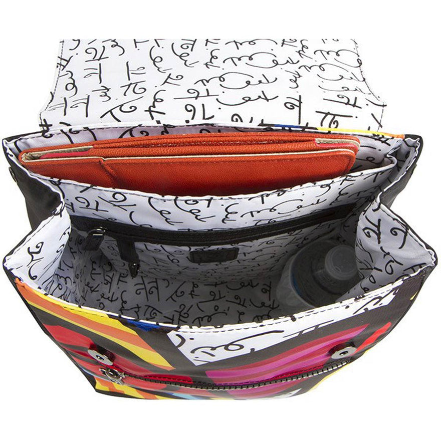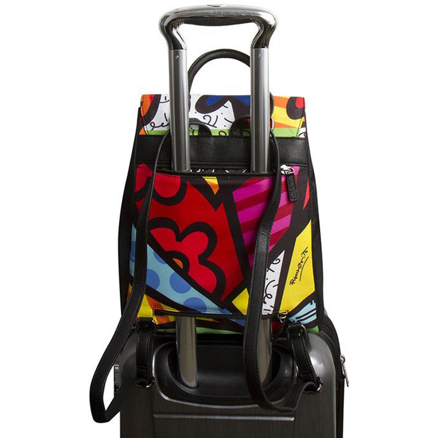 The Britto Backpack is part of a Limited Edition Series of travel accessories. Born in Brazil, Romero Britto is a Florida-based neo-pop artist, painter, serigrapher, and sculptor. Combining elements of pop art and graffiti painting, Brittorsquo;s signature style is recognized worldwide.