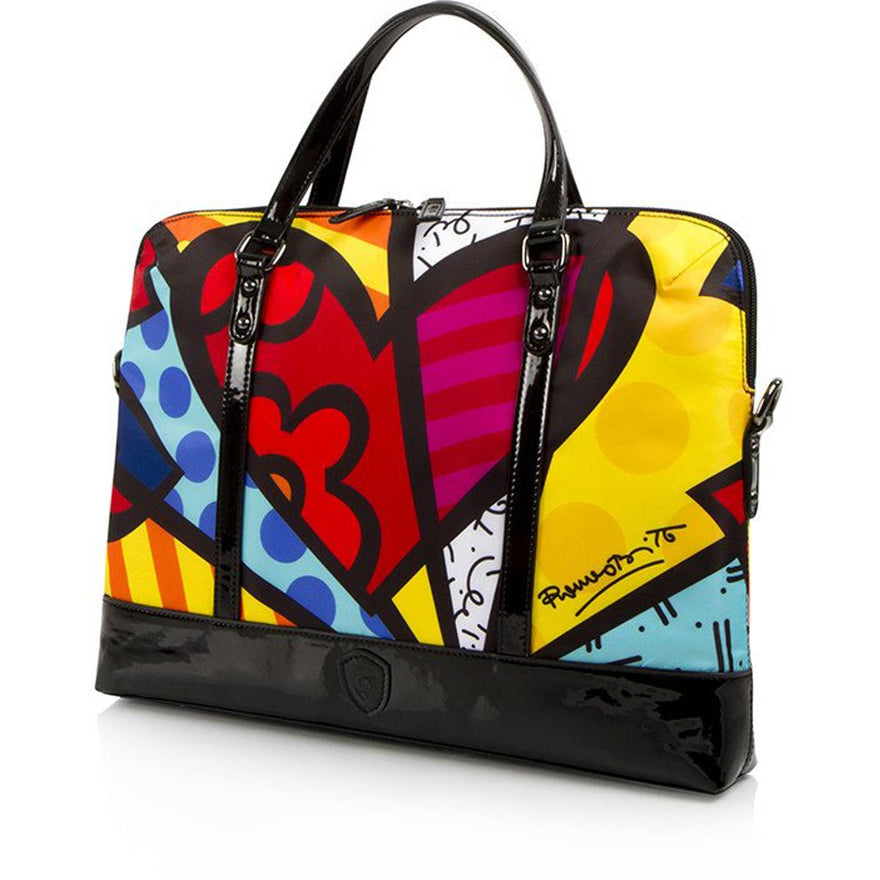 The Britto Laptop Case is part of a Limited Edition Series of travel accessories. Born in Brazil, Romero Britto is a Florida-based neo-pop artist, painter, serigrapher, and sculptor. Combining elements of pop art and graffiti painting, Brittorsquo;s signature style is recognized worldwide.
