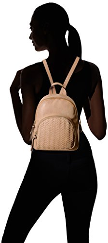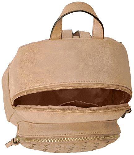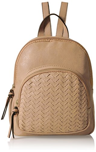 Details: Bueno faux leather veg tan back back offers a soft but structured look with front woven pocket and multiple exterior and interior compartments and pockets