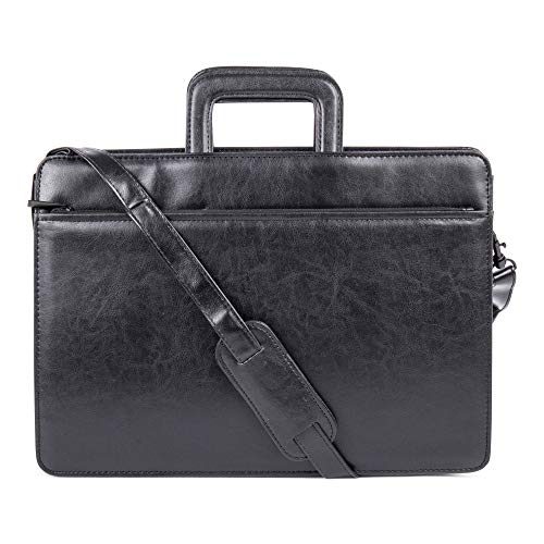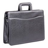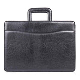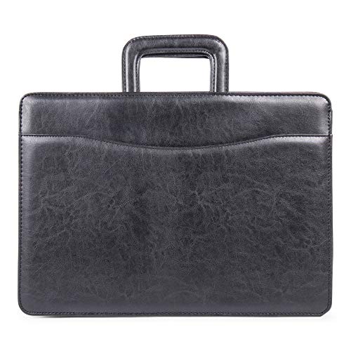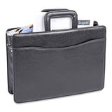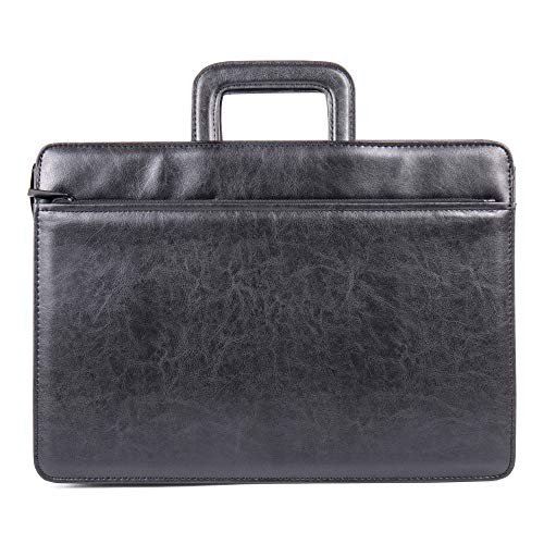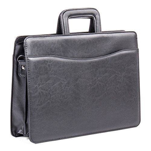Details: Tufide leather look. Twin outside pockets, one open for ease of access, the second with zippered closure for privacy. Drop down comfort grip handles. Large zippered center pocket with two compartments containing organizer for business essentials, notepad,cards, pen. Lined interior.