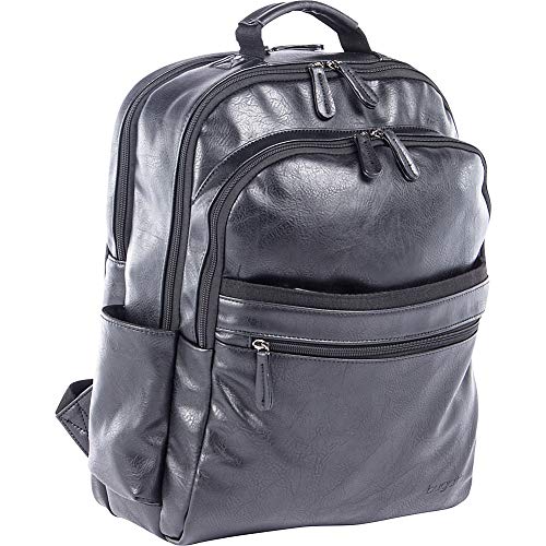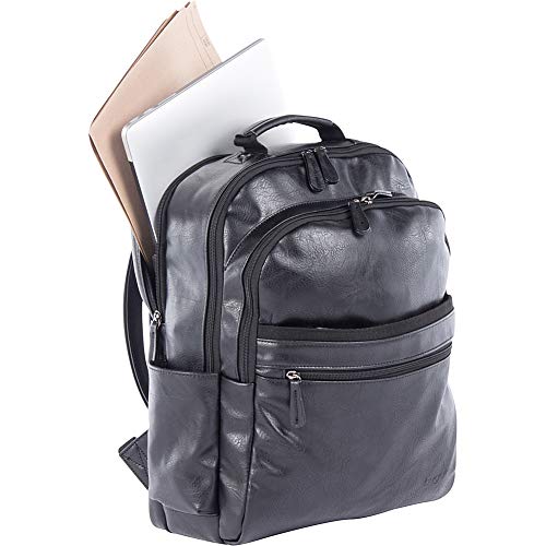 Details: No need to toil as you easily traverse the globe sporting this accommodating backpack. Be it flying the fair skies or in the hotel lobby, access your laptop in the 15 compartment, or sport it over your shoulder with the padded strap. Made with flexible vegan leather, this backpack is both stylish and functional.