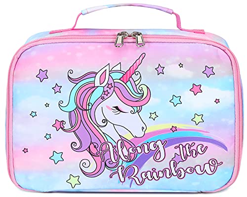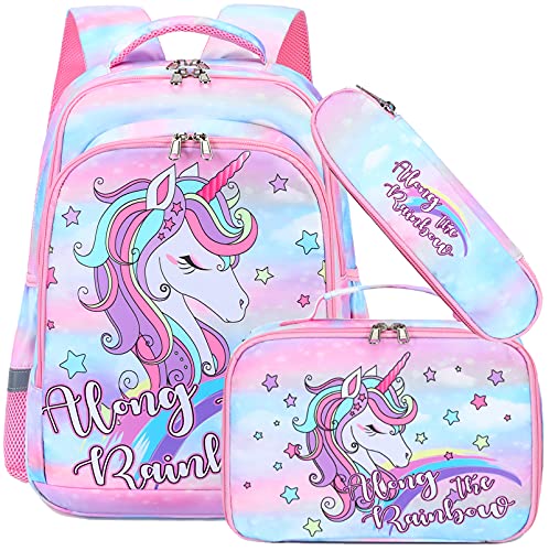 - The kids backpack set with cute unicorn headband printed, including girl backpack: 15"(L)x11.8"(H)*5.1"(W) , lunch bag: 10"(L)*7.1(H)*4.3"(W) , beautiful matching sets as your little ones Christmas/New Year/ Birthday gift