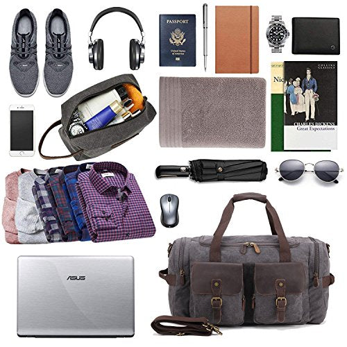 - Size: 57cm (L) x 30cm (H) x 23cm (W)/ 22'' (L) x 12'' (H) x 9'' (W) Style -- Oversized Flight Bag / Weekender Bag / Sport Duffel Bag / Canvas Gym Bag / Carry on Luggage / Travel Bags for men and women.