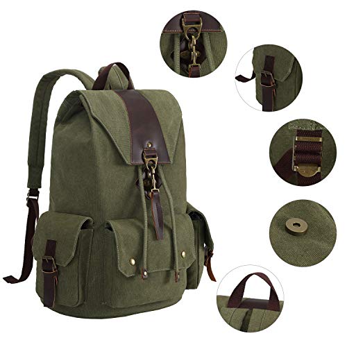 Details: BLUBOON Canvas Vintage Backpack Leather Casual Bookbag Women Men Rucksack