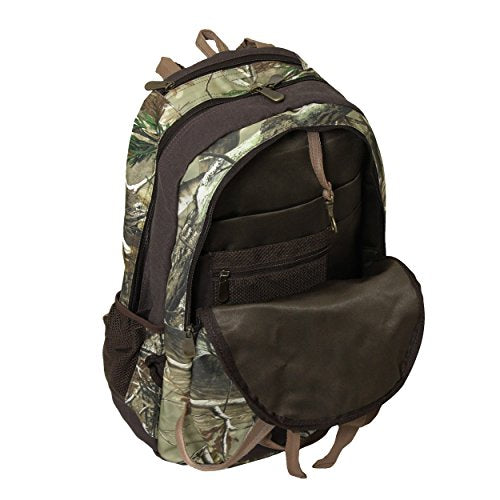 Details: It's the perfect backpack for the hunters of the world. The large main compartment has a two-way zipper and can hold 2-liter compatible pouch. It has numerous pockets inside and out. An outside mesh pocket will hold a 20 oz. Water bottle. The foam padded back helps with load comfort. It contains multiple gear-lock attachment points and side compression straps to balance the gear. The padded shoulder straps adjust to 29 inch for the right fit. It is made with distressed full grain buffalo hide with 300 denier polyester oxford water resistant fabric.
