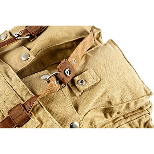 Details: It's all about that backpack. Perfect for the college student or metro commuters on-the-go. It has a zipper top closure with a fold over flap that snaps closed. Plenty of pockets inside and out for your tech accessories, cell phone, and more. This handsome backpack is made with washed cotton canvas and paired with leather accents.