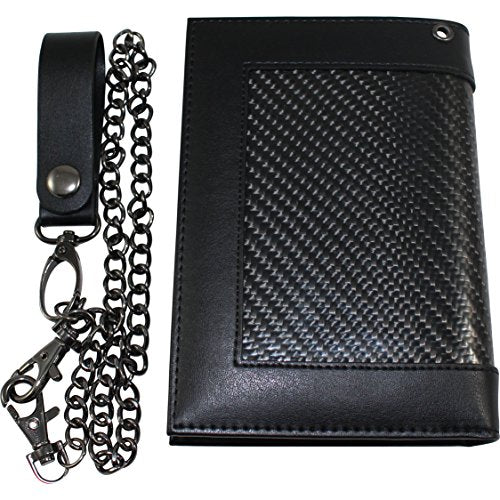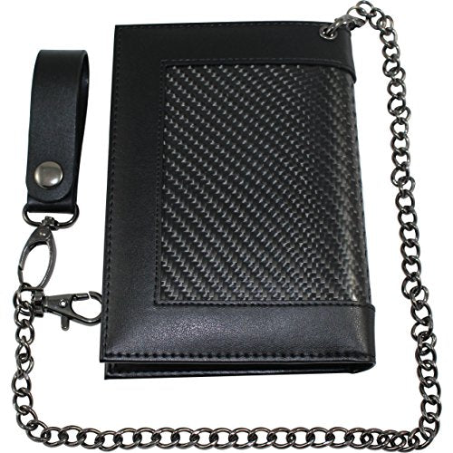 - TRAVEL WITH PEACE OF MIND - Your new carbon fiber wallet will be secured physically & electronically. Prevent pick-pocketing with the removable 24-inch long belt loop chain; the wallet is also lined with RFID shielding material to protect your credit cards & passport from identity theft scanning devices.