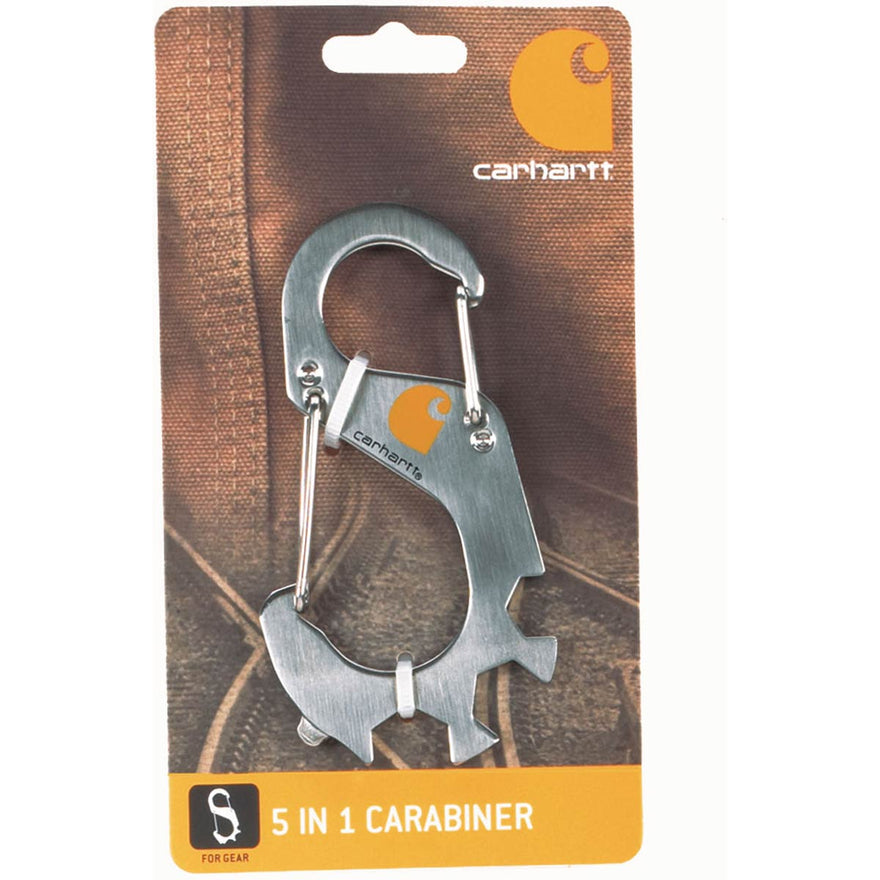 There may be tools for every job but sometimes you just need something simple that you can have accessible at all times. The stainless steel Carhartt Carabiner is the handiest tool around. Itrsquo;s actually a double carabiner so you can hook things on both ends. And for all those odd ball jobs you may come across, the Carabiner comes equipped with 3 wrench sizes and a flathead screwdriver. Plus we even threw in a bottle opener for those rare times when you're not working.`