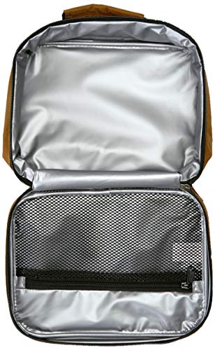 Details: The Carhartt Insulated Lunchbox is made of rugged synthetic fabric with Rain Defender durable water repellent to withstand the journey between home and school, office, or job site. The soft-sided lunch box has a fully insulated interior that keeps food cold until lunchtime, and includes a zippered, mesh pocket to hold small stuff, like utensils and condiments. The Carhartt Insulated Lunchbox features a sturdy haul-handle and triple needle-stitch construction for reinforcement where it’s needed. Like all Carhartt Work Bags, Packs, and Gear, the Carhartt Insulated Lunchbox is covered by a limited warranty against defects in materials and workmanship. Measures 10w x 7.5h x 4d inches; weighs 0.4 pounds.