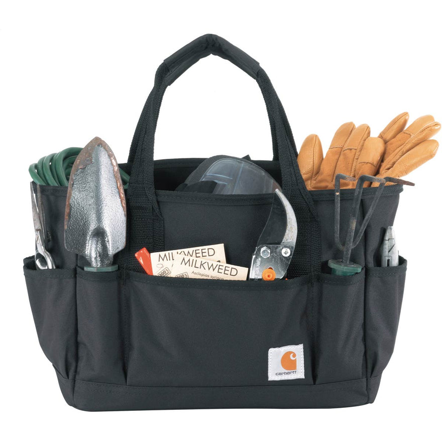 You're working just as hard at home as those on a job site and need a bag that will keep up. Utilize this bag for tools, gardening gear or paint supplies. Built of rugged 600D Poly with Rain Defender durable water repellent the Carhartt Legacy Tool Tote is ideal for the DIY-er who isn't afraid to tackle new projects on their own. With 15 exterior pockets, 11 interior pockets and loops and a large open main compartment there is a spot for everything you need. Top it off with dual webbing haul handles with comfort grip. This bag is a staple for every household. Additional details: triple needle stitching for reinforcement where it counts, Carhartt logo patch. Carhartt Work Bags, Packs amp; Gear are covered by a Limited Warranty against manufacturing defects in materials and worksmanship for the normal life of the product.