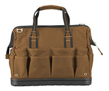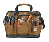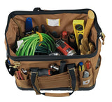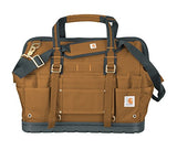 Details: Carhartt Legacy tool bags are large, durable, and well-organized, making them perfect for job-site professionals or serious DIYers. Built of sturdy synthetic fabric with Rain Defender water repellent, Legacy bags keep tools clean, dry and accessible. Tools stay organized and easy to find with a variety of different sized pockets and loops, and an internal metal frame that provides structure to easily get in and out without the bag collapsing on itself. Carhartt Legacy Tool Bags feature YKK zippers, metal hardware, rugged comfort-grip haul handles, triple-needle stitching, an ID tag, and the Carhartt logo patch. Available in three sizes: 18-Inch, with 28 exterior pockets and loops and 16 interior pockets (18w x 14.5h x 11d inches), 16-Inch, with 23 exterior pockets and loops and 11 interior pockets (16.4w x 13h x 10.2d inches), and 14-Inch, with 17 exterior pockets and 10 interior pockets (14w x 10.5h x 9d inches). The 18-Inch and 16-Inch bags are also available with a load-bearing, abrasion-resistant molded base for even greater support for heavy tools and gear. Like all Carhartt Work Bags, Packs, and Gear, Carhartt Legacy Tool Bags are covered by a limited warranty against manufacturing defects in materials and workmanship for the normal life of the product.