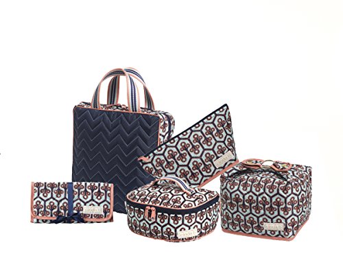 Details: It's no coincidence that cinda b's extra-large cosmetic ii looks like a pretty package because it makes the perfect "gift to self" for any and all occasions And pretty it is, with its beautiful colorway and gorgeous, eye-catching design elements. But don't let its good looks fool you, for this handy bag is roomy enough for full-sized bottles of shampoo, lotion, styling product or conditioner in addition to all those brushes, powders and lipsticks. It measures a spacious 10 inch wide x 7 inch deep x 6 inch high, has a full zip top closure and a clever loop and strap closure that creates a carry handle. But, best of all, it's uniquely designed flat bottom keeps it standing open and upright for easy access to all your essentials so it's ideal whether you're at home or on-the-go. Cinda b takes you from around town to around the world without missing a beat Cinda b's extra-large cosmetic ii is fashioned from a lightly padded, quilted nylon/poly fabric that is water resistant, stain resistant, 100 percent machine washable, surprisingly lightweight and extremely durable. About cinda b after running a successful interior design business in Atlanta, cinda found it difficult to find a fully functional, stylish bag that was versatile enough for the modern woman's everyday life. As a result, the cinda b brand was created. For cinda b, it's important to produce American handbags and create American jobs. Teaming up with one of the most experienced, well-known sewing companies in the country, each and every cinda b product is proudly made in the USA. Cinda b offers a variety of pattern options that combine bold and unique modern prints with effortless functionality. The cinda b family invites busy women everywhere to discover their beautiful collections of handbags, travel bags and accessories available on amazon.