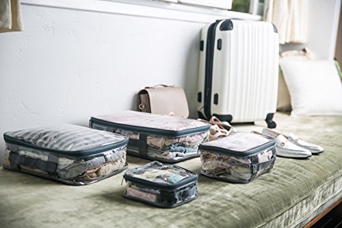 - CLEAR PACKING CUBES: EzPacking's set of four clear packing cubes make it easier than ever to pack an organized suitcase and maximize space while traveling. DIMENSIONS: Large - 16" L x 10.3" W x 4" H // Medium - 12" L x 10.3" W x 4" H // Small - 10.3" L x 6" W x 4" H // Extra Small - 6" L x 6" W x 2.5" H