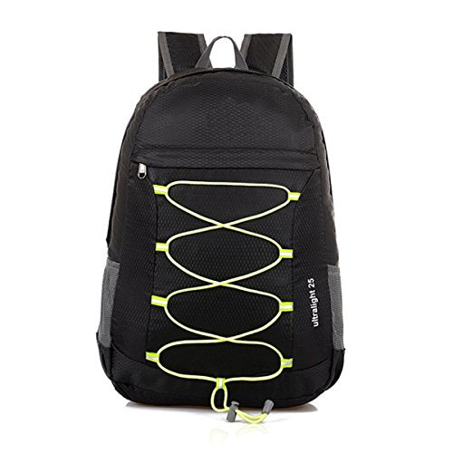 Details: Compact: Fold into zippered inner pocket to fit anywhere. Unfold from pocket to backpack. More storage space and keep things organized: 1 x main bag: To carry what you need in the trip, 1 x interlayer: For your computer, books, 1 x zippered inter bag: A perfect place for valuables such as cash, credit cards and passport. 1 x front bag: Great for any quick access such as guide books. 2 x side mesh bag: For your travel mug, umbrella, lightweight (0. 5 Pounds) and roomy (25 liters): A true space saver. Stuff the bag into its own pocket for storage and unzip it when you reach your destination. Avoid overweight charges, simply unfold from your luggage and use it as a carry on for your excess baggage. Durable: The backpack is made from highly rip and water resistant nylon fabric, provide strengthen and long-lasting performance with minimal weight. Stress points are reinforced with bar tacking for increased longevity. Dimensions: Unfold 17. 5 x 12 x 5 inches/fold 7 x 6. 5 x 2. 5 inches.