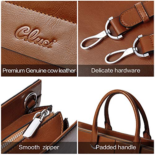 - Gorgeous Material: The leather briefcase is made of oil wax genuine cowhide leather. Match with rust-proof silver metal hardware which is smooth, durable and anti-corrosion with a fine finish. Inner coffee fabric lining soft to touch.