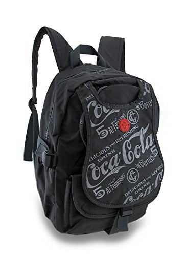 Details: This awesome nylon backpack is perfect for a day at the park, camping, or as an overnight bag. It features the classic trademark Coca-Cola script and measures 15 inches tall, 12 inches long, 5 1/4 inches wide. The front has a zipper compartment and a Velcro pocket for quick access to items, while the roomy main compartment holds all you need for your adventure. The back is padded, and the padded straps are adjustable for a perfect fit. There is also a slip pocket on either side for drinks, while you`re on the go.