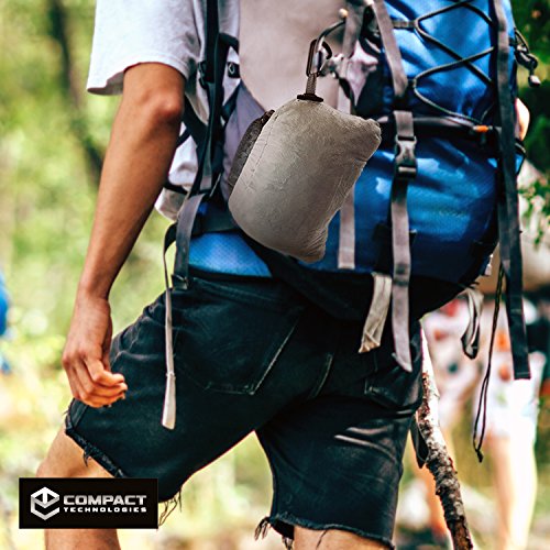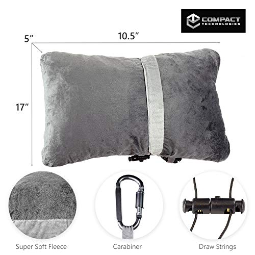 - SERIOUSLY COMPACT -- This pillow folds and compacts down small. You secure it with material flap and draw strings. "Works great and easy to use, feels bumpy to the touch but soft when you lay our head on it" You'll love how compact it is for on the go and travel, camping, etc.
